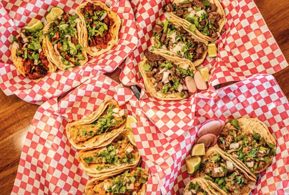 Two street tacos filled with your choice of meat. Served with rice, beans, and a refreshing horchata or Jamaica.
